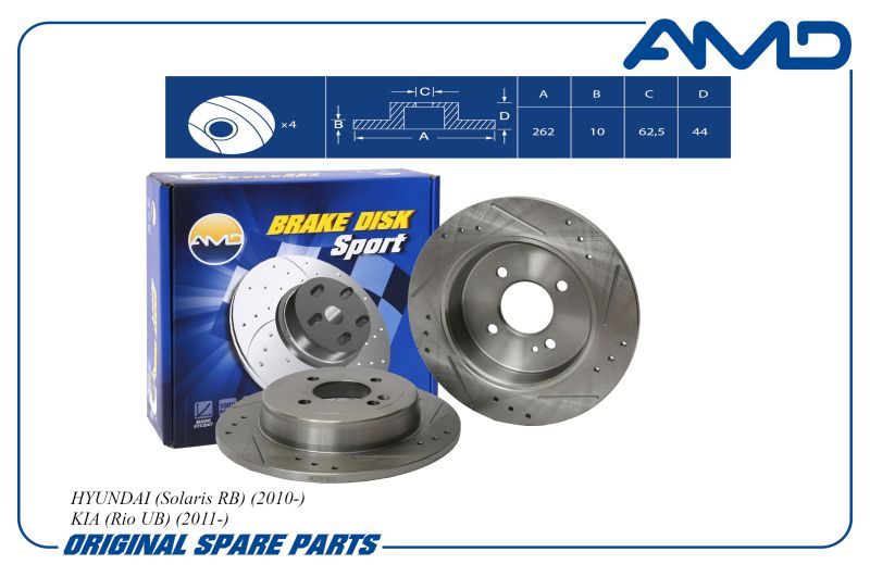 Диск заднего тормоза (1 шт.) 58411-0U300/AMD.SPORT.BD5268 (перфорированный с проточкой) AMD