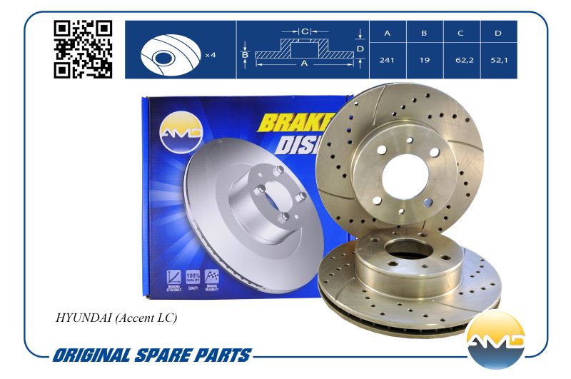 Диск переднего тормоза (1 шт.) 51712-25060/AMD.SPORT.BD5250 (перфорированный с проточкой) AMD